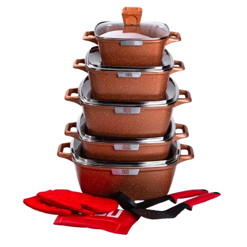 Набор из 5 алюминиевых квадратных кастрюль с толстым дном mgc + лопатка, половник, перчатк...