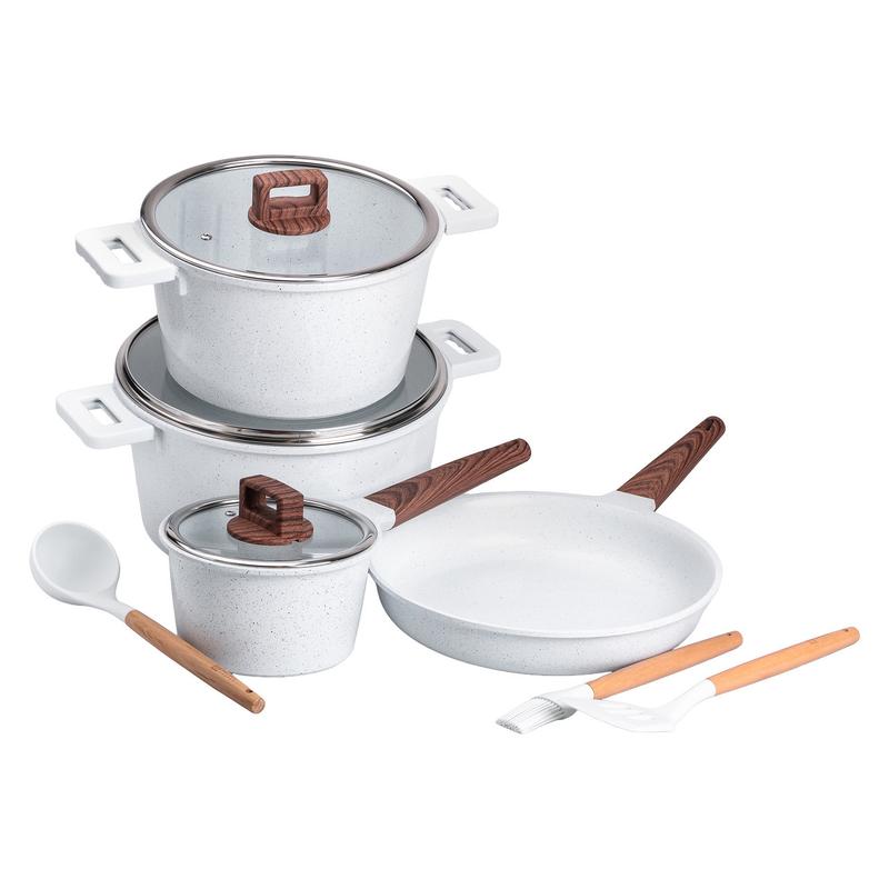 Набор посуды алюминий с толстым дном mgc с лопаткой, половником и щеткой белый