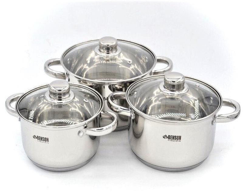 Набір каструль із нержавіючої сталі benson bn-198 (6 предметів)