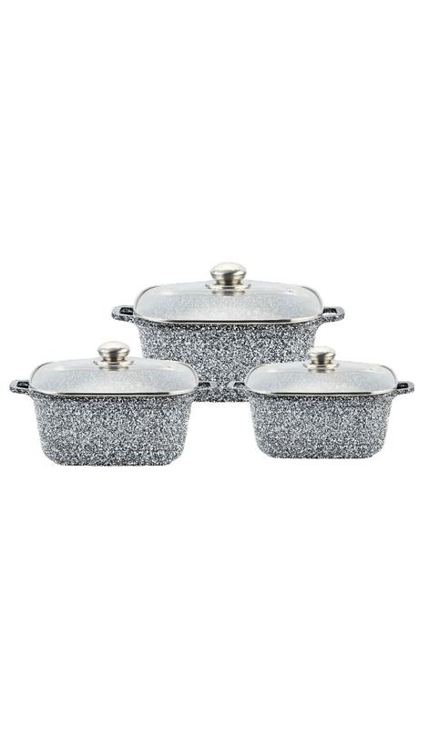 Набір каструль із гранітним покриттям Benson BN-375 ОПИС: Цей набір включає в себе три кастрюлі різного обсягу (2,1 л, 3 л, 5,1 л) з відповідними кришками. Він ідеально підходить для приготування різноманітних страв і задовольнить потреби навіть досвідчених шеф-кухарів. Benson BN-375 надасть вам все необхідне для комфортного та смачного приготування їжі. ПЕРЕВАГИ ТА ОСОБЛИВІСТЬ: Висока якість матеріалу: Кастрюлі виготовлені з високоякісного алюмінію, що гарантує стійкість до корозії при звичайному митті посуду. Швидке і легке нагрівання: Набір забезпечує швидке нагрівання кастрюль, що дозволяє вам швидко приготувати ваші улюблені страви. Універсальна сумісність: Кастрюлі підходять для всіх видів кухонних плит, включаючи газові, індукційні, керамічні та електричні. Гранітне антипригарне покриття: Внутрішнє покриття кастрюль має антипригарні властивості, що дозволяє готувати страви з мінімальною кількістю олії і легко чистити посуд після готування. Стійкість до високої температури: Кастрюлі можуть витримувати високу температуру, що робить їх ідеальними для різних видів приготування їжі. Рівномірне розподілення тепла: Набір забезпечує рівномірне розподілення тепла для готування страв з мінімальною кількістю жиру. Комплектація: Набір включає в себе три кастрюлі різного об'єму (2,1 л, 3 л, 5,1 л) та три кришки. ОСНОВНА ХАРАКТЕРИСТИКА: Висока якість алюмінію гарантує стійкість до корозії за стандартного миття, Легкий і швидкий нагрів, Підходить для всіх кухонних плит, Гранітне антипригарне покриття, Стійкість до високої температури, Швидкий і рівномірний розподіл тепла для приготування їжі з невеликою кількістю жиру Комплектація - 3 каструлі 2,1л; 3л; 5,1л; 3 кришки. OPTPLATFORMA