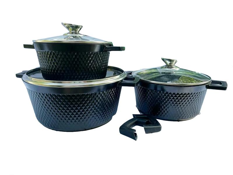 Набір каструль benson bn-394 з антипригарним мармуровим покриттям з алюмінію (6 предметів)
