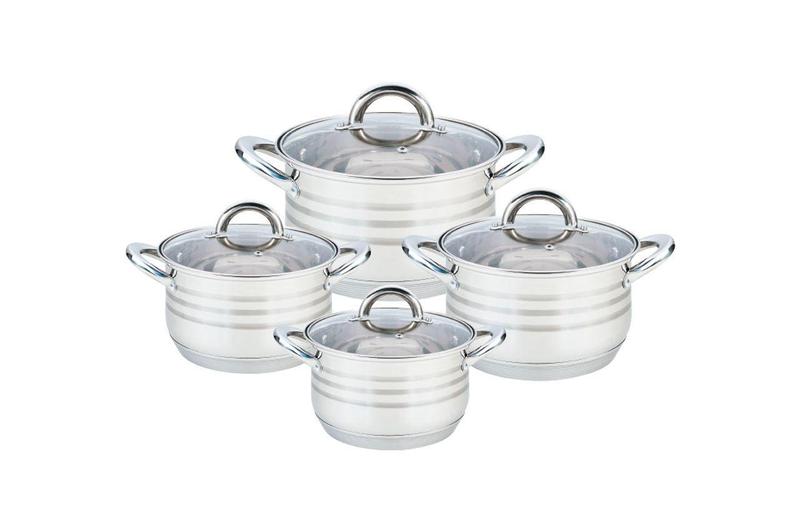 Maestro MR3513-8 это набор из 4х кастрюль, объемом 2,9/ 3,9/ 5,1/ 6,5 литров. Кастрюли изготовлены из высококачественной нержавеющей стали. Имеют многослойное термоаккумулирующее дно подходящее для всех типов источников тепла, включая индукцию. Толстая стенка способствует более быстрому и равномерному прогреву содержимого кастрюли. Ручки крепятся надежным клепочным креплением. Кастрюли размера среднего и больше среднего, незаменимы когда надо много готовить.