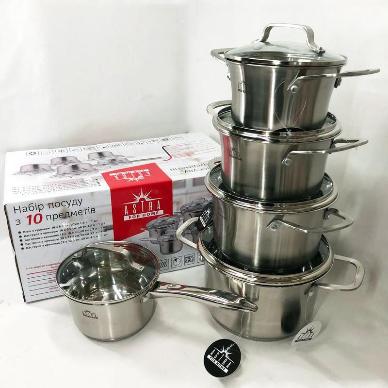 Набор посуды 10 предметов astra a-2310, набор кастрюль для электроплиты, сборный набор кас...