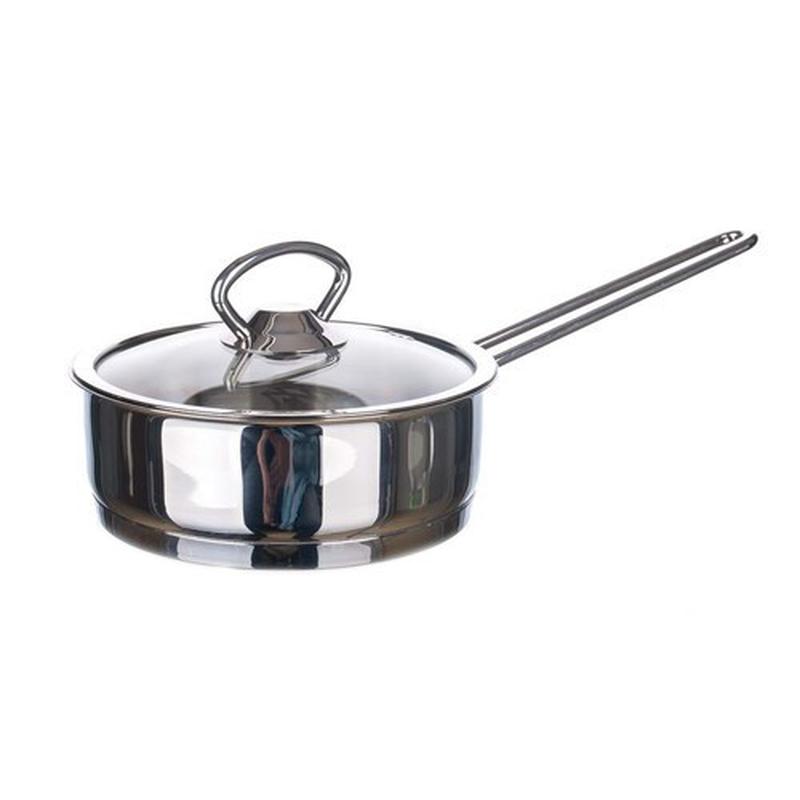 Каструля виготовлена з нержавіючої сталі – це міцний, гігієнічний матеріал, довговічний і простий у догляді. Має скляну кришку з ручкою. Може використовуватися на всіх типах плит, включаючи індукційні. Ідеально підходить для приготування соусів і дитячих каш, швидкого розігріву рідких страв невеликих порцій. Протиударна, зносостійка, не схильна до механічних впливів гострих предметів. Їжа в такій каструлі добре прогрівається і не пригорає.
