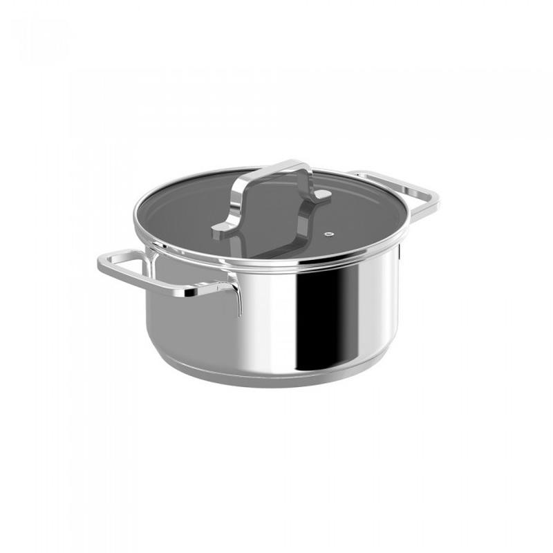 Кастрюля со стеклянной крышкой BERGHOFF изготовлена из высококачественной нержавеющей стали 18/10. Имеет зеркальную полировку снаружи и матовую -- внутри. Трехслойное капсульное дно не деформируется при нагреве и обеспечивает быстрое и равномерное распределение тепла. Для удобства использования внутрення стенка снабжена практичной разметкой. Благодаря толщине, боковые ручки нагреваются незначительно, а ручка на крышке имеет достаточно широкий угол для комфортной работы. Стеклянная крышка с отверстием для выхода пара позволяет контролировать весь процесс приготовления в оптимальном режиме.