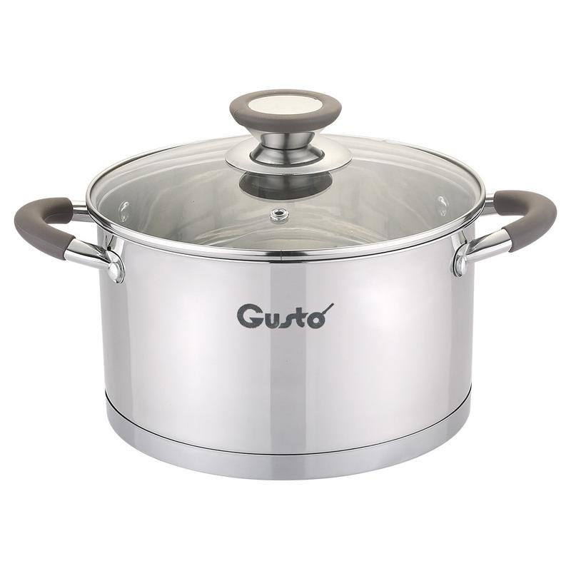 Штрих код: 2000963129174. Вес: 0.850 кг. Ручка: Да. Материал изготовления: Нержавеющая сталь. Форма: Круглая. Производитель: Gusto. Тип: Каструля. Объём: 1.9 л. Цвет: Нержавеющая сталь. Высота: 12 см. Диаметр: 160 мм. Наличие крышки: Да. Материал крышки: Стекло. Подходит: Для всех видов плит. Количество приборов в наборе: 1. Материал ручек: Нержавеющая сталь/силекон.