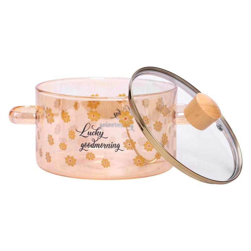 Кастрюля из боросиликатного стекла 1,5 л с деревянной крышкой — прозрачная посуда для приг...