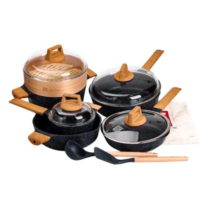 Набор посуды mgc 2 кастрюли, 2 сковороды, сотейник, пароварка, половник, лопатка, фартук h...