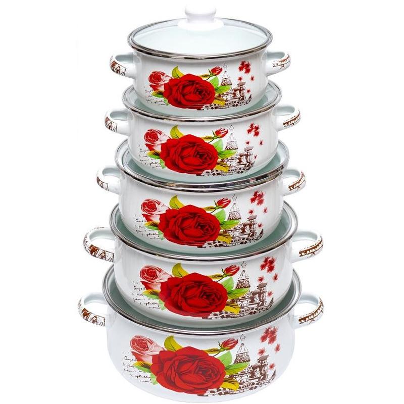Набор эмалированных кастрюль 5шт 1,1л/1,6л/2,3л/3,1л/4л с крышками 673fdg-1-0244 knz