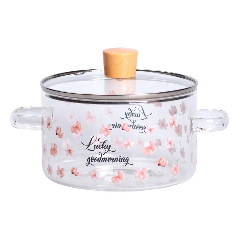 Стеклянная кастрюля прозрачная 1.7 литр с крышкой жаропрочная hp-34-22