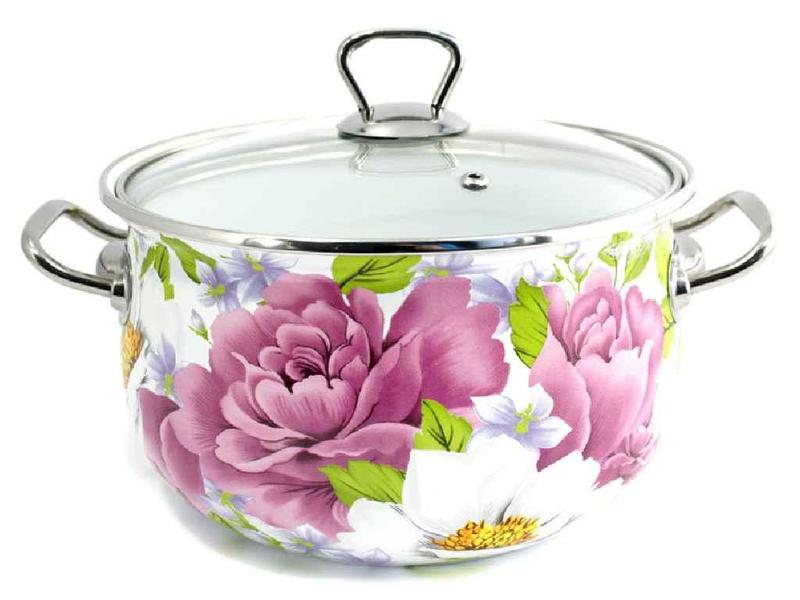 Нерж.сталь с 3-слойным эмалированным покрытием. Толщина металла 1мм Объем: 4,0л Диаметр изделия: 20см Материал: Нержавеющая сталь/эмаль Размеры (см): Форма: