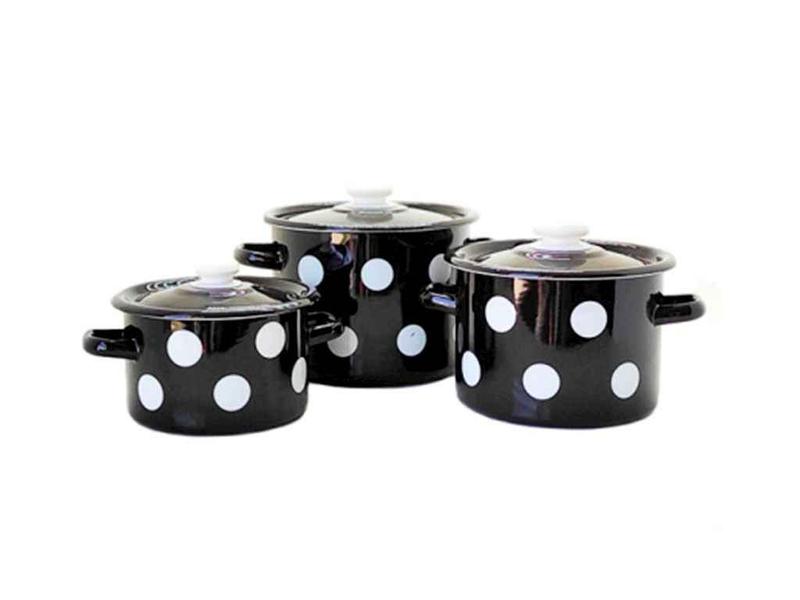 Кастрюля цилиндрическая 2,0 л-1шт, Кастрюля цилиндрическая 3,0 л-1шт, Кастрюля цилиндрическая 5,5л- 1шт. Подходит для всех видов плит. Эмалированная посуда может использоваться для приготовления и хранения любых блюд, на всех видах плит (обычных газовых, керамических, электрических и индукционных).