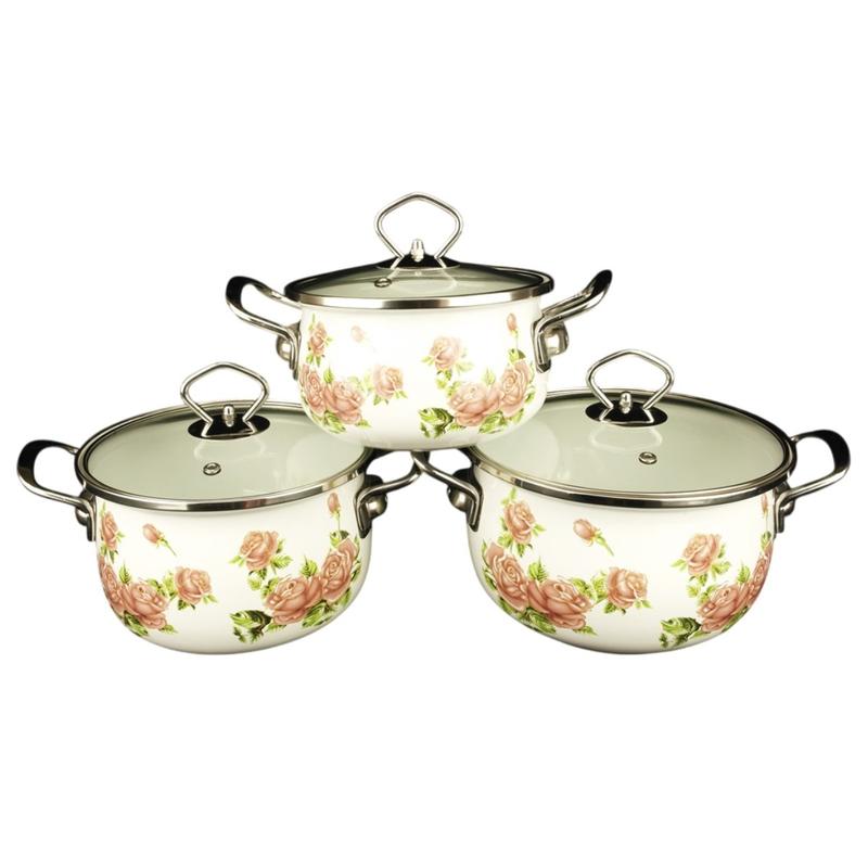 Набор кастрюль эмалированных a-plus 6 предметов (2055) розы