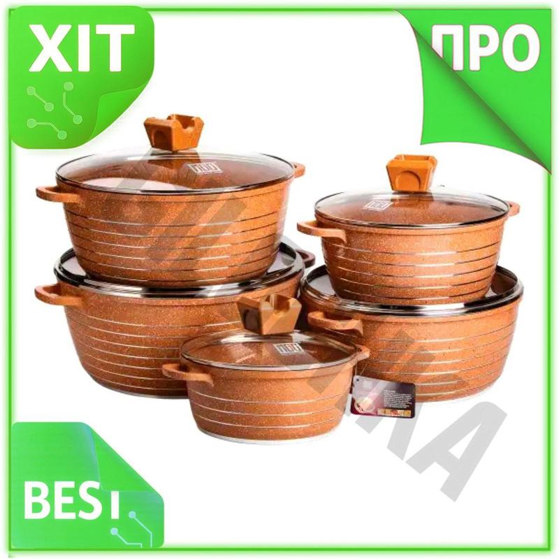Ve набор кастрюль 5 шт new version алюминиевые с толстым дном для приготовления еды жаропр...
