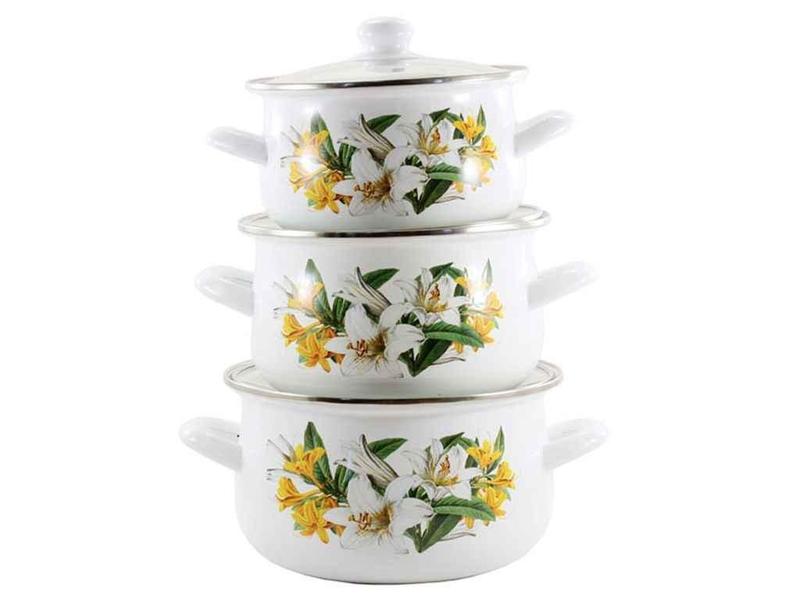 Набор кастрюль 2/3/4л эмал. 3-пр лилии 7w тм zauberg