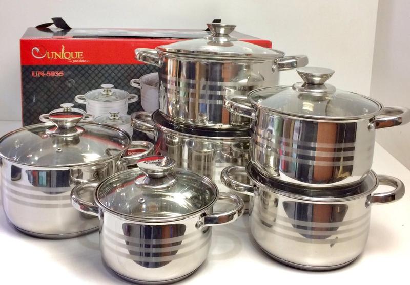 Набор кастрюль unique un-5035 12пр. (2,1л, 2,9л, 2,9л, 3,9л, 5,1л, 6,5л, с крышками)(2 шт/...