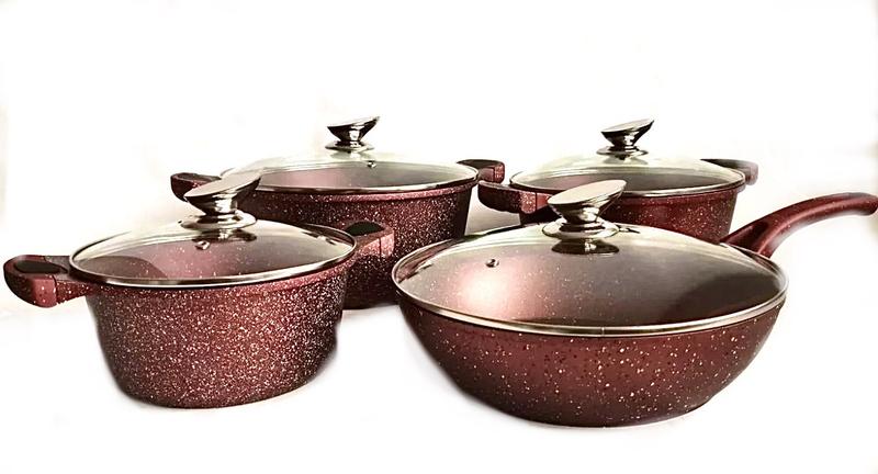 Набор посуды-8 предметов,утолщенное дно,трехслойное антипригарное мраморное покрытие bn-33...