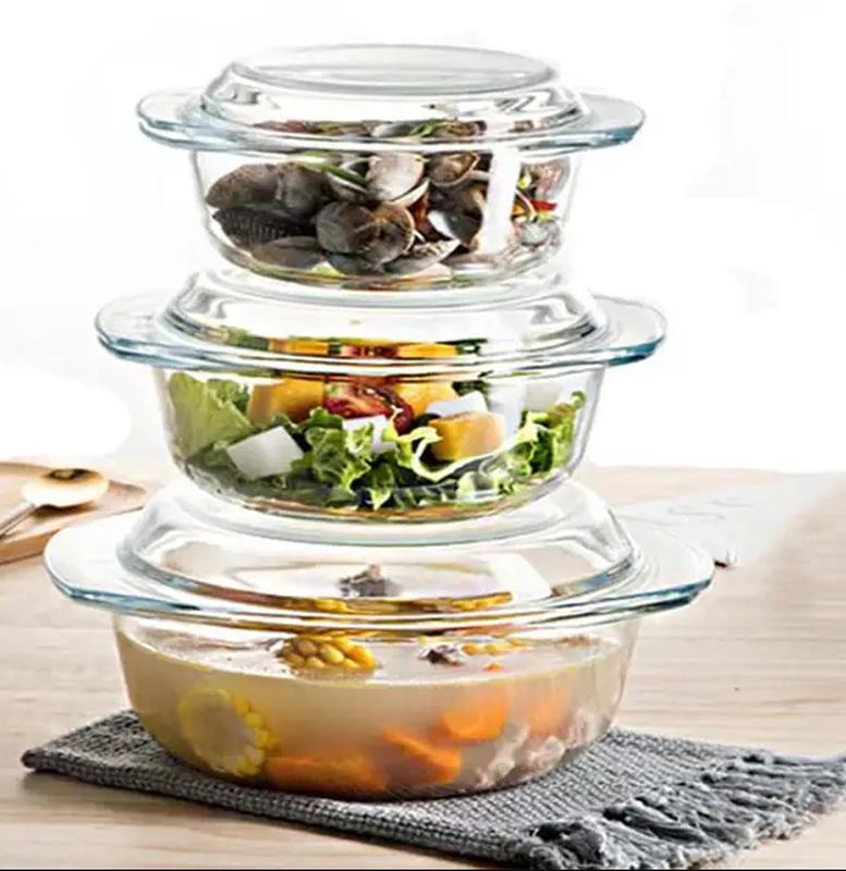Набор стеклянных кастрюль 3 шт круглый 0,65/1,0/1,4 лтр