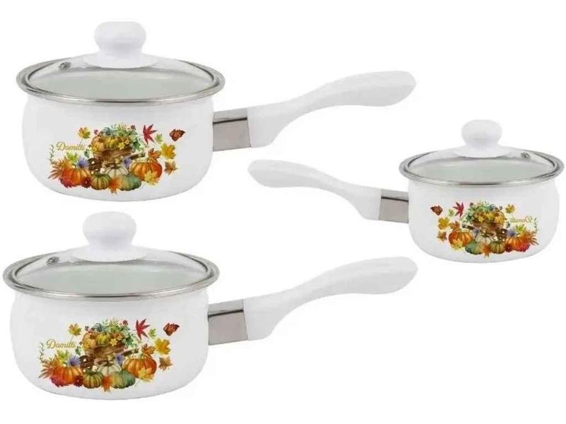 Набір Емальованих Ковшів 6 Предметів Ківшик Ø 12 см х 7 см (Обєм 0,8 Лтр.) Ківшик Ø 14 см х 8 см (Обєм 1,2 Лтр.) Ківшик Ø 16 см х 8,5 см (Обєм 1,7 Лтр.). Матеріал Покриття: Емаль; Матеріал Кришки: Скло; Матеріал Ручок: Пластик; Форма: Кругла; Спосіб Кріплення Ручок Литі (Суцільнолиті) Має Сучасний Дизайн. Ковши Мають Зручні Ручки І Скляні Кришки. Цей Ковшів Не Вступає В Реакцію З Їжею Під Час Приготування, А Значить Не Міняє Її Смак І Запах. Легко Очищається Навіть В Прохолодній Воді.