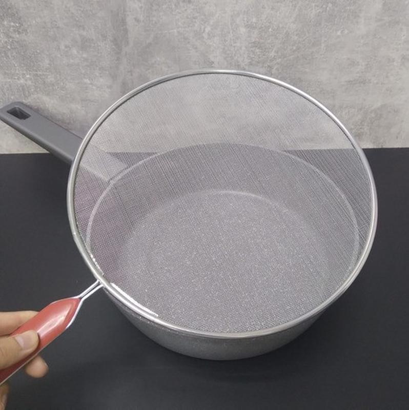 Антижировая защитная сетка (брызговой экран) – отличное решение проблемы брызгающего жира и масла при приготовлении пищи! Экран не препятствует выходу пара, что позволит вашему блюду приобрести аппетитную румяную корочку, а плита остаться абсолютно чистой. Это многофункциональное средство так же послужит вам подставкой под горячее или средством для просеивания и процеживания! Сетка изготовлена из высококачественной нержавеющей стали. Диаметр экрана - 25 см; толщина проволоки - 0,5мм. Длина экрана с ручкой - 29,5 см