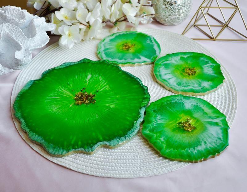 Диаметр подноса 22 см. Диаметр коастеров 13 см. Можно использовать -как подставочку для бокалов / чашек -для предметной фотосъемки -как подставочку для украшений Можно покрыть термосмолой, чтобы ставить на него горячее. На заказ возможно выполнение в любом цвете. При наложенном платеже необходимо внести аванс в размере 150 грн. (эта сумма будет вычтена из суммы наложенного платежа). Все посылки страхуются на полную стоимость по умолчанию. Заказ наложенным платежом отправляется только после согласования заказа по телефону. При оформлении товара "под заказ" учитывайте предоплату в размере 50% от стоимости товара. Важно. Реальный оттенок изделия может немного отличаться от фотографии. Это не является браком. При отказе от посылки, все транспортные расходы оплачиваются клиентом. Если вами была сделана полная предоплата заказа, после получения нами возврата, в течение 3-х рабочих дней вам будет возвращена сумма оплаты за исключением стоимости доставки в 2 стороны. * Иногда могут быть форс-мажорные обстоятельства, когда сроки доставки могут увеличиться. Мы не несем ответственности за задержки по вине перевозчика. Возврат/обмен товаров надлежащего качества осуществляется за счет покупателя. В случае возврата, денежные средства покупателю возвращаются (при соблюдении условий, прописанных выше) в течение 3-х рабочих дней с момента получения нами товара в размере предоплаты за вычетом стоимости доставки в 2 стороны. В случае, если заказ был отправлен с бесплатной доставкой (заказы по 100% предоплате), при возврате товара Покупателю возвращается сумма предоплаты за вычетом стоимости оплаченной нами доставки.