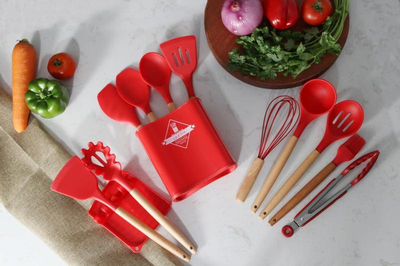 Кухонный набор zp 12 предметов, силиконовый, красный sshop
