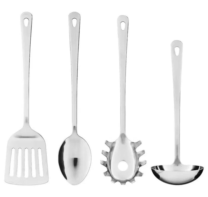 Кухонный набор IKEA GRUNKA, 4 шт., нержавеющая сталь Материалы: Нержавеющая сталь В набор входит: ложка 33 см, половник 28 см, лопаточка 34 см и ложка для спагетти 24 см. Можно мыть в посудомоечной машине.