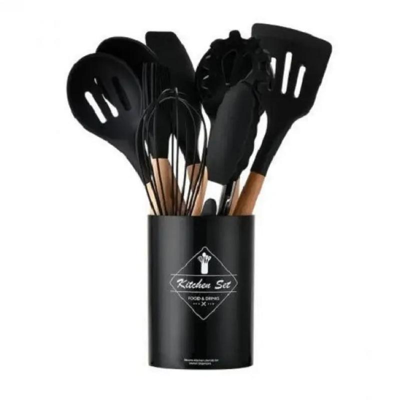 Набор кухонных принадлежностей Kitchen Set – это удобный и практичный комплект инструментов, предназначенных для помощи в приготовлении пищи. Этот набор включает 12 различных предметов, каждый из которых служит своей уникальной функцией, позволяя вам выполнять разнообразные задачи на кухне. Комплектация: Пензлик. Щипцы. Венчик. Ложка с прорезью. Половник. Ложка для спагетти. Кроватка для сервировки. Лопатка с прорезью. Лопатка – 2 шт. Ложка для салату. Подставка