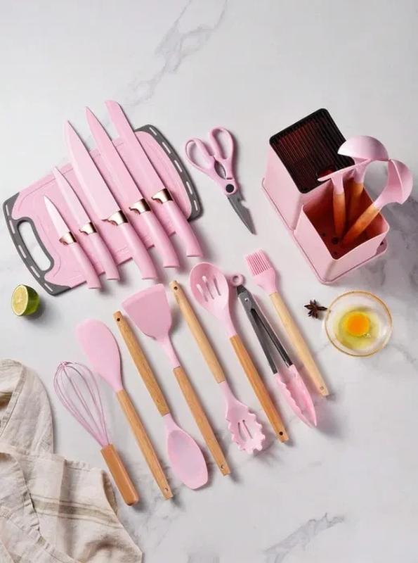 Набор ножей + кухонные принадлежности zepline zp-107 19 предметов розовый