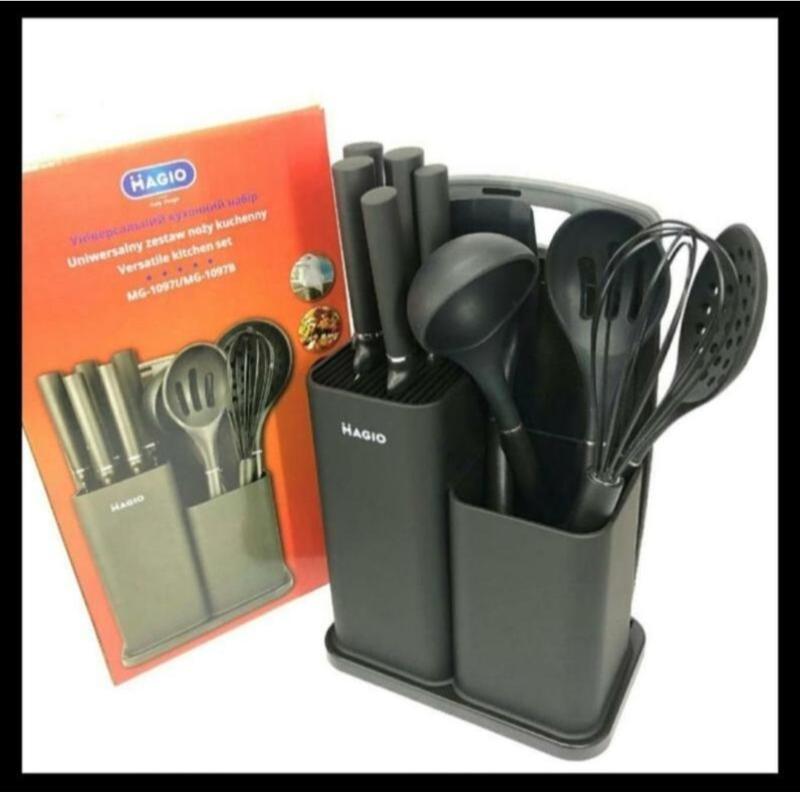 ЗАМЛЕНИЕ УКРПОТКАЮ ТОЛЬКО ИЗ-ОПЛАТОЮ на КАРТКЕ ПРОДАВЦА!! Универсальный кухонный набор MAGIO MG-1097 – это идеальный выбор для тех, кто любит с комфортом готовить разнообразные блюда. В наборе вы найдете 12 предметов, которые сделают вашу работу на кухне легкой и приятной. НАБОР ВКЛЮЧИТ: Половник, венчик, шумовка, ложка для салата и лопатка из силикона, которые не повреждают посуду и не нагреваются при использовании. Пять ножей из нержавеющей стали, которые имеют острые лезвия и удобные ручки из силикона Soft Touch. В наборе есть нож для овощей, универсальный нож, слайсерный нож, нож для хлеба и нож шеф-повара, которые подойдут для нарезки любых продуктов. Доска для нарезки из силикона, которая имеет небольшой вес и легко моется. ХАРАКТЕРИСТИКИ MAGIO MG-1097: Половник, см – 32х7,5 Венчик, см - 32,5х6 Шумовка, см - 33х9,5 Ложка для салату, см – 32х7 Лопатка, см – 32х8,5 Нож для овощей, (длина, см/толщина, мм) - 9/1,27 Универсальный нож, (длина, см/толщина, мм) - 13/1,2 Слайсерный нож, (длина, см/толщина, мм) - 20/1,51 Нож для хлеба, (длина, см/длина, мм) - 20/1,53 Нож шеф-повара, (длина, см/длина, мм) - 20/1,52 Доска для нарезки, см – 33х20х0,6 Материал - Силикон Материал лезвия ножей – Нержавеющая сталь Материал ручек ножей – Силикон Soft Touch.