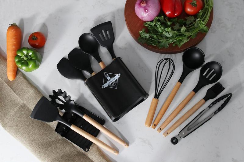 Кухонный набор zp, кухонная утварь, 12 предметов, силиконовый, черный