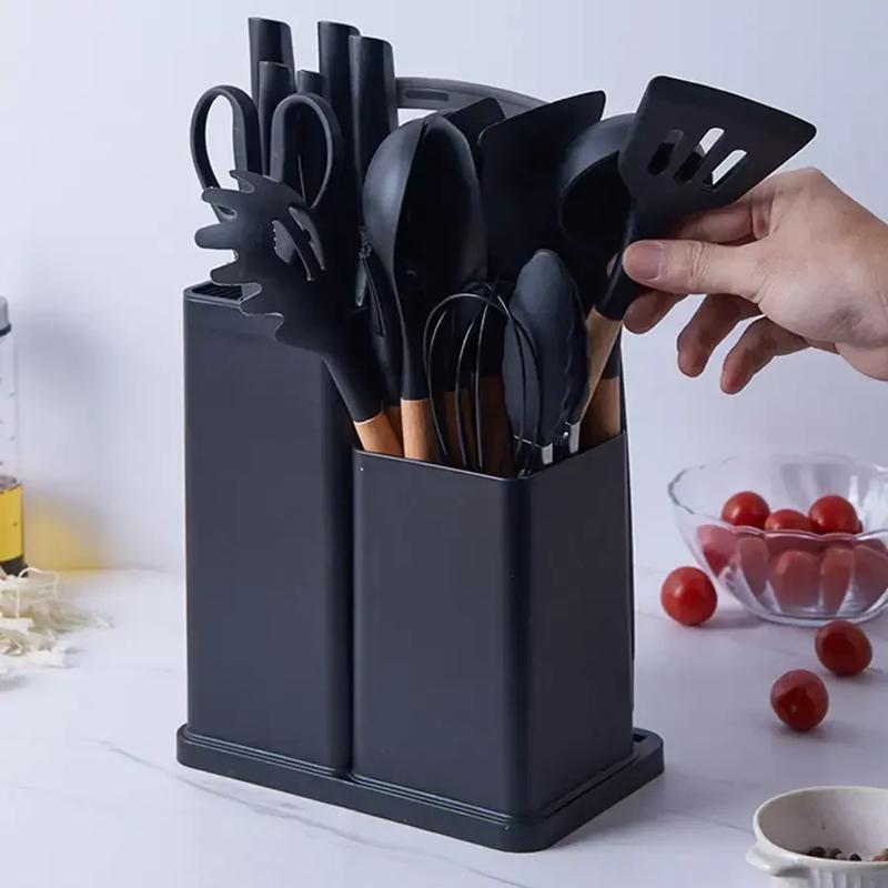 Чорний набір кухонного приладдя 19 предметів з подвійною підставкою дошкою набором ножів z...