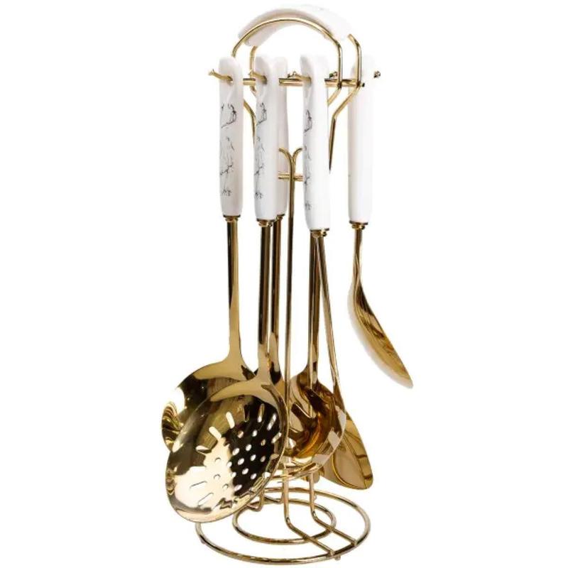 Набір кухонного приладдя 7 предметів на підставці столові прилади з нержавіючої сталі золо...