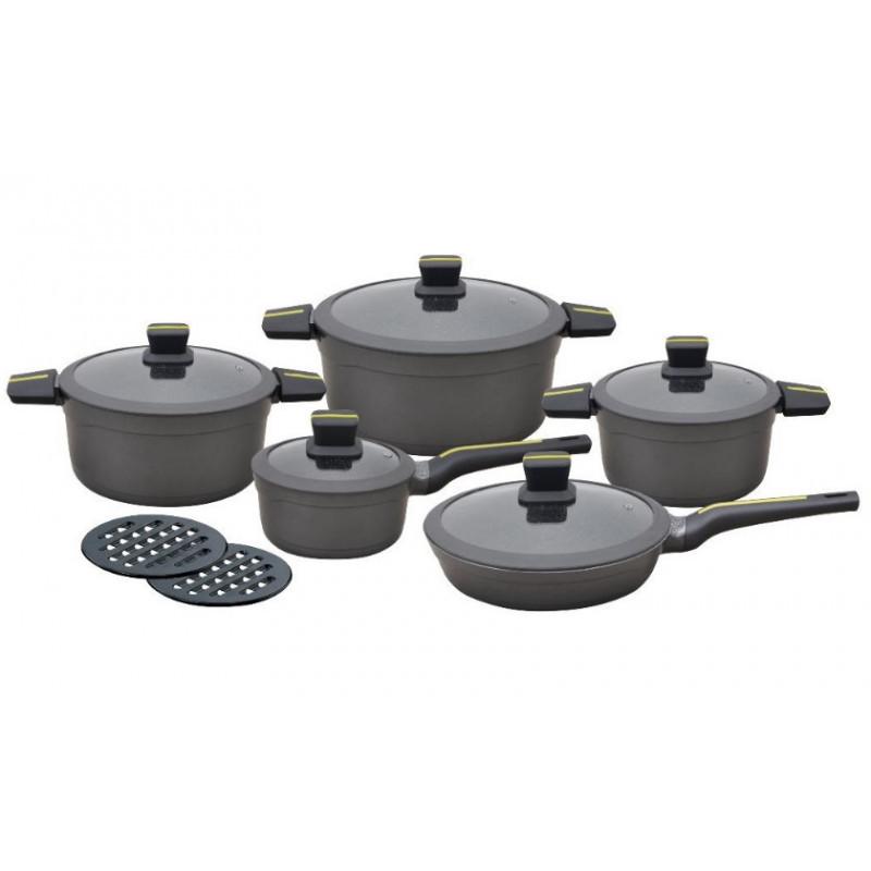 Набір посуду Klausberg з 12 предметів (ківш 1.3л; 2.7л; 4.7л; 7.2л; сковорідка 24см; 2 бакелітові шайби), KB-7358 Характеристика: Ківш 16 см. - 1,3л. Сковорода з кришкою діаметр 24 см. - 2л. Каструля з кришкою діаметр 20 см - 2,7л. Каструля з кришкою діаметр 24 см - 4,7л. Каструля з кришкою діаметр 28 см - 7,2л. Бакелітова шайба – 2 шт. Скляні кришки із загартованого скла. Посуд підходить для всіх типів джерел тепла. Виготовлений із високоякісного алюмінію з антипригарним покриттям. Увага. Виробник залишає за собою право змінювати комплектацію, колірну гаму та характеристики товару без попереднього повідомлення. .