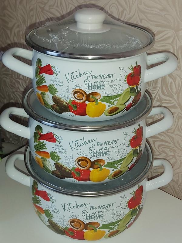 Продам новий набір емальованого посуду. ТМ "INTEROS" В набір входять каструлі 2л, 3л, 4л -Скляна кришка із загартованого скла з нерж. обідком. -Високоякісне емальоване покриття. -Підходить на всі види плит, в тому числі і індукційні. -Можна мити в посудомийній машині.