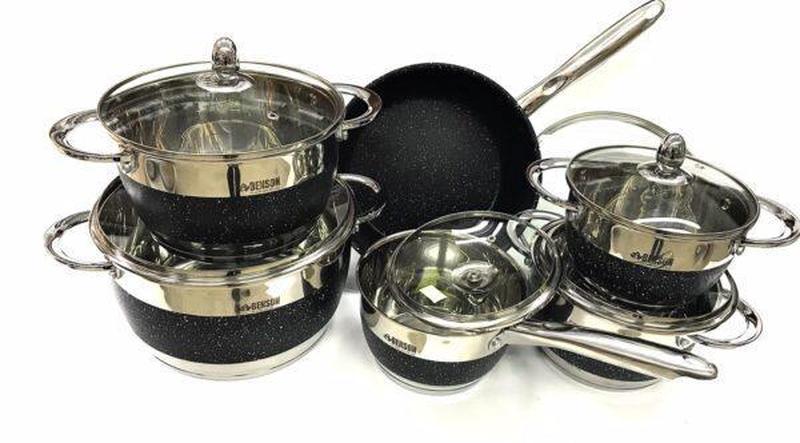 BN-293 (2) - это универсальный набор кастрюль из нержавеющей стали, который обязательно пригодится в любой кухне. В комплект входят 5 различных по размеру кастрюль: 2,1 литра, 2,1 литра, 2,9 литра, 3,9 литра и 6,5 литра, а также сковорода. Каждая кастрюля имеет удобные ручки для переноски и стеклянные крышки с отверстием для пара. Красный цвет набора придаст вашей кухне яркость и оригинальность. Нержавеющая сталь, из которой изготовлены кастрюли, обладает высокой прочностью и долговечностью. Она не подвержена коррозии и не взаимодействует с пищей, сохраняя ее свежесть и вкус. Благодаря тому, что материал не впитывает запахи и не меняет цвет при нагревании, вы сможете готовить разнообразные блюда без опасения за сохранность вкусовых качеств ингредиентов. Каждая кастрюля имеет удобный объем и удлиненную форму, что позволяет равномерно распределять тепло по всей поверхности. Таким образом, блюда готовятся быстрее и экономятся энергозатраты. Сковорода с антипригарным покрытием поможет вам приготовить вкусные жареные блюда без лишнего использования масла. Набор кастрюль BN-293 (2) отличается не только высоким качеством материалов и функциональностью, но и стильным дизайном. Красный цвет придаст вашей кухне яркий акцент и подчеркнет вашу индивидуальность. Этот набор станет отличным подарком для тех, кто ценит комфорт и уют в своем доме. Приобретите набор кастрюль BN-293 (2) сегодня и наслаждайтесь легкостью приготовления вкусных блюд каждый день!