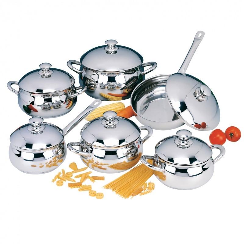 Набір посуду з 12 предметівТМ «LORA» виготовлений з високоякісної легованої нержавіючої сталі 18/10, із застосуванням технології біметалічного дна, яке сприяє рівномірному розподілу тепла. Легована нержавіюча сталь 18/10 є одним із різновидів нержавіючої сталі, до складу якої входить 18% хрому і 10% нікелю. Такий матеріал робить набір міцним і довговічним. Завдяки такому співвідношенню хрому і нікелю сталь не входить в хімічні реакції з кислотами і лугами, які містять продукти, вона безпечна для організму. Ваші страви будуть дуже смачними, а головне – корисними. Ручки пательні і каструль не нагріваються, що робить набір посуду зручним у використанні. Набір з нержавіючої сталі можна мити миючими засобами, крім абразивних порошків і паст, здатних залишити на поверхні посуду подряпини. Його можна мити в посудомийній машині. Набір підходить для газових, електричних, склокерамічних, індукційних плит. З набором посуду ТМ «LORA» приготування їжі перетвориться на справжнє свято, оскільки воно ніколи ще не було таким простим і легким. У набір входить сотейник: діаметр – 16 см, висота – 9 см, товщина борту – 1,2 мм, товщина дна – 6,5 мм, об'єм – 1,3 л; каструля: діаметр – 16 см, висота – 9 см, товщина борту – 1,2 мм, товщина дна – 6,5 мм, об'єм – 1,8 л; каструля: діаметр – 18 см, висота – 10 см, товщина борту – 1,2 мм, товщина дна – 6,5 мм, об'єм – 2,3 л; каструля: діаметр – 20 см, висота – 11 см, товщина борту – 1,2 мм, товщина дна – 6,5 мм, об'єм – 3,4 л; каструля: діаметр – 24 см, висота – 12 см, товщина борту – 1,2 мм, товщина дна – 6,5 мм, об'єм – 4,8 л; пательня: діаметр – 24 см, висота – 6,5 см, товщина борту – 1,2 мм, товщина дна – 6,5 мм; кришка: діаметр – 16 см, товщина – 1,2 мм; кришка: діаметр – 16 см, товщина – 1,2 мм; кришка: діаметр – 18 см, товщина – 1,2 мм; кришка: діаметр – 20 см, товщина – 1,2 мм; кришка: діаметр – 24 см, товщина – 1,2 мм; кришка: діаметр – 24 см, товщина – 1,2 мм.