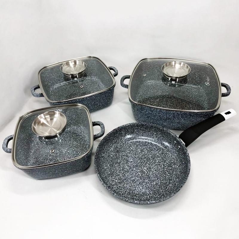 Набор казанов unique un-5531 7 предметов, квадрат: 16 см, 20 см, 24 см, круглые 24 lb-391...
