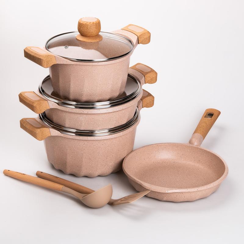 Набор посуды, 3 кастрюли, сковорода, алюминиевая толстодонная mgc с лопаткой и половником,...
