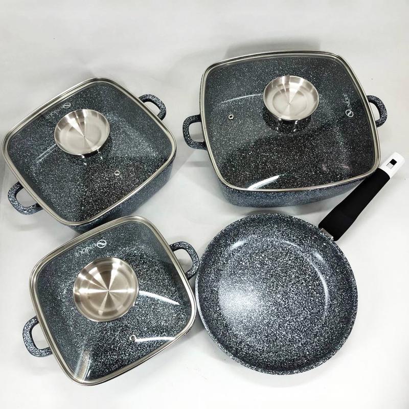 Набор казанов unique un-5531 7 предметов, квадрат: 16 см, 20 см, 24 см, круглые 24 nh-495...
