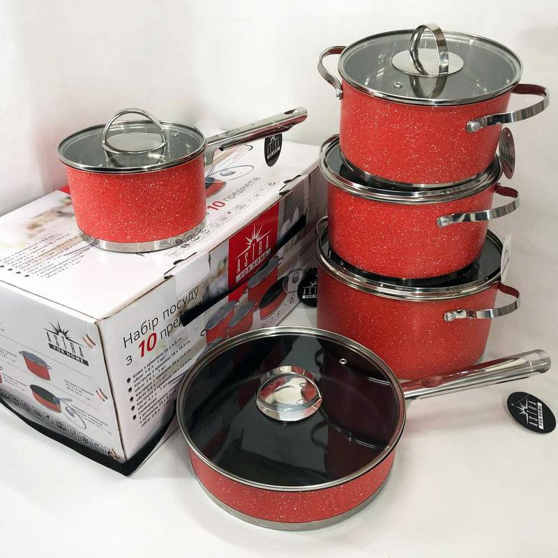 Набор посуды 10 предметов astra a-2510, набор кастрюль с антипригарным покрытием, хорошие...