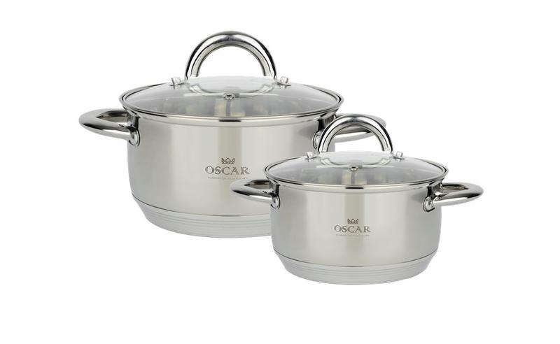 Набір посуду OSCAR NEST Набір 4 пр. кастрюля(1.7л+3.15л) (OSR-4000) - Набір посуду Nest - Об'єм: 1.7, 3.15 л - Діаметр: 16, 20 см - Матеріал: нержавіюча сталь - Наявність кришки: так Набір посуду Oscar Nest, 4 предмета (OSR-4000) - Комплектація: 2 каструлі Ø 16-1.7 L, Ø 20-3.15 L + 2 кришки. - Матеріал каструлі: високоякісна нержавіюча сталь. - Товщина стінок: 0.4 мм. - Матеріал ручок: високоякісна нержавіюча сталь. - Тип кріплення ручок: клепочное. - Матеріал кришки: жаропрочное скло (з клапаном для випуску пари і метал. Обідком) - Семіслойноє капсульне дно для рівномірного розподілу тепла по всій внутрішній поверхні каструлі. - Внутрішні позначки літражу. - Підходить для всіх видів плит, включаючи індукційні. - Підходить для використання в посудомийних машинах. ТМ OSCAR - це бренд посуду для приготування, який поєднав в собі багаторічний досвід європейських експертів та сучасні модні тенденціі. Посуд ТМ OSCAR розроблений групою українських випускників Culinary Arts Academy Switzerland. В Академії їх вчили, що добір посуду на кухню - це таке ж мистецтво, як і створення найкращих страв. Коли ж під час стажування вони відвідували європейське посудне виробництво, то зрозуміли, що поєднати високу якість, привабливий дизайн і прийнятну ціну - цілком можливо! Саме тоді й народилася ідея створити власну лінійку посуду й розвивати її на Батьківщині - в Україні «Хочеш зробити щось добре - зроби це сам!» - цей принцип став головним для нас на декілька останніх років. Окрім отриманих у Швейцарській Академії Кулінарного Мистецтва знань, команда випускників проводила безліч досліджень та численні опитування досвідчених фахівців кулінарної справи. Також залучали до співпраці європейських дизайнерів та інженерів, ретельно вивчали виробничі потужності, аби гарантувати якість та догодити найвибагливішій господині. Найголовніше те, що до створення нової лінійки посуду команда ставилися як до написання картини або до висічення скульптури - ми не робили товар, ми робили витвір мистецтва. Так і з'явився новий бренд посуду OSCAR, який отримав високі оцінки кращих українських кулінарних майстрів та відкрив для кожного можливість готувати смачні шедеври на власній кухні у посуді європейського рівня!
