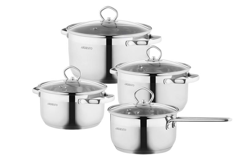 Набор посуды Ardesto Gemini AR1908GSS Посуда с набора серии Gemini изготовлена с нержавеющей стали. Посуда поставляется с термостойкими стеклянными крышками с отверстием для пара и совместима со всеми видами плит, включая индукционную. Для очистки посуды можна использовать посудомоечную машину. - Серия Gemini - Тип Набор посуды - Количество предметов, шт 8 - Диаметр, см 16/18/20/22 - Объем, л 1.6/2.5/3.6/4.7 - Материал Нержавеющая сталь - Материал крышки Стекло (с отверстием для пара) - Толщина стенок, мм 0.5 - Толщина дна, мм 2.5 - Мерная шкала Нет - Отверстие для слива воды Нет - Очистка в посудомоечной машине Да - Совместимость с плитами Газовые, электрические, стеклокерамические, галогенные, индукционные - Комплектация 3 кастрюли, 4 крышки, ковш