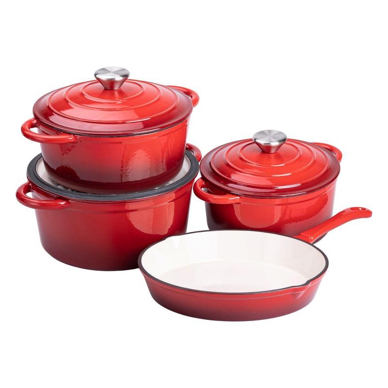 Набор чугунной посуды для приготовления 3 кастрюли и сковорода с эмалированным покрытием к...
