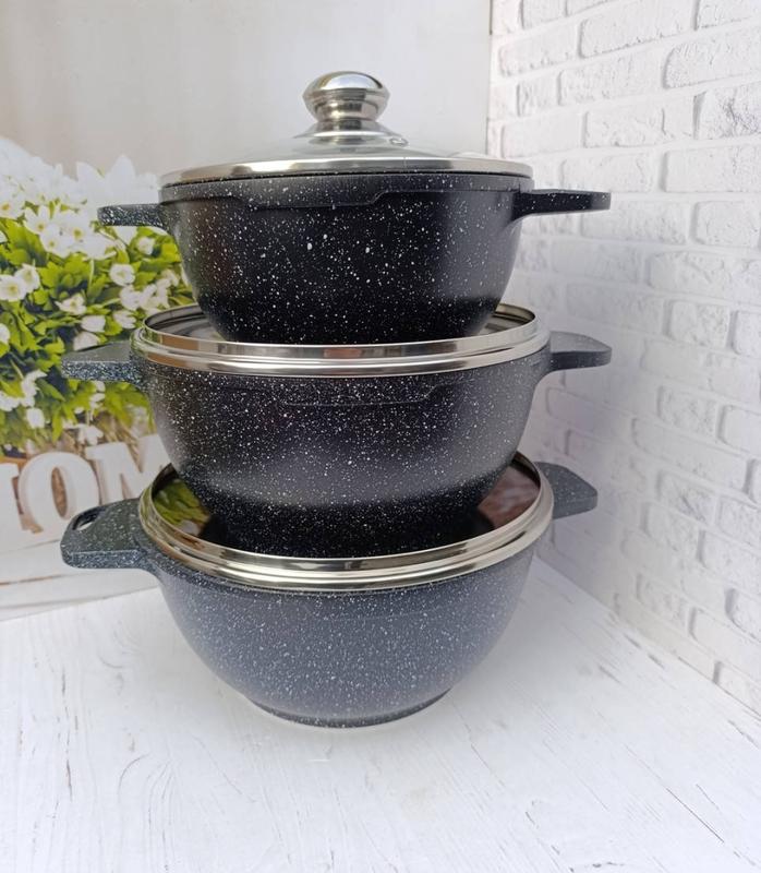 Набір каструль benson bn-386 з мармуровим антипригарним покриттям 6 предметів чорний