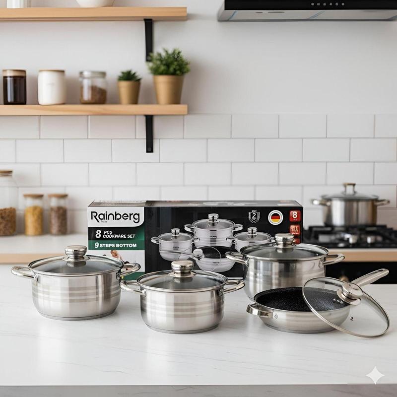 8 предметов набор кастрюль из нержавеющей стали rainberg rb-605 | 8 предметов.