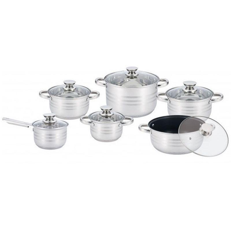 Набор кастрюль UNIQUE UN-5036 с индукционным дном 12 предметов (2.1 / 2.9 / 3.9 / 6.5 л + ковш 2.1 л + казан 4.5 л) Готовить ужин для всей семьи с набором кухонной посуды с 5-слойным дном UNIQUE UN-5033 одно удовольствие. В такой посуде пища не прилипает и не пригорает, готовится равномерно и в ней максимально сохраняются все полезные вещества, натуральный вкус и аромат. Вы сэкономите время, силы и нервы. И не только в процессе приготовления. Посуда прекрасно моется как вручную, таки и в посудомоечной машине. Харктеристики: - Нержавеющая высококачественная пищевая сталь - Энергосберегающее пятислойное капсульное дно - Эффект быстрого нагрева и равномерного распределения тепла, что предотвращает пригорания в процессе готовки - Подходит для всех источниках нагрева в том числе индукционных плит - Комбинированная (зеркально-матовая) обработка внешней поверхности. - Внутренние отметки объема - Удобные крышки из термостойкого стекла с отверстием для выхода пара - Термостойкие не нагревающиеся клепаные ручки - Подходят для мытья в посудомоечной машине и хранения в холодильнике Размеры: - Кастрюля с крышкой Диаметр: 24 см; Обьем: 6.5 л - Кастрюля с крышкой Диаметр: 20 см; Обьем: 3.9 л - Кастрюля с крышкой Диаметр: 18 см; Обьем: 2.9 л - Кастрюля с крышкой Диаметр: 16 см; Обьем: 2.1 л - Ковш с крышкой Диаметр: 16 см; Обьем: 2.1 л - Кастрюля с крышкой (с тефлоновым покрытием, можно жарить) Диаметр: 24 см; Обьем: 4.5 л