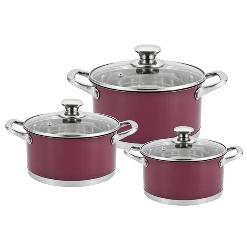 - В набор входят3 кастрюли/ 3 стеклянные крышки - Объем, л 2,6/3,6/6,1 - Диаметр, см 18/20/24 - Материал Нержавеющая сталь - Совместимость с источниками тепла Индукционные плиты, электрические плиты, стеклокерамические плиты, газовые плиты - Индикатор нагрева Нет - Упаковано в коробку Да - Использование в посудомоечной машине Да - Толщина стен, мм 0,5 - Толщина дна, мм 3 - Мирная шкала Да - Использование в духовке при темп. не выше 160°C Да