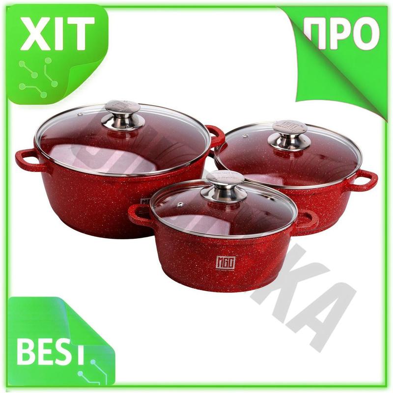 Ve набор алюминиевых кастрюль 3 new version шт с толстым дном антипригарные крышки мраморн...