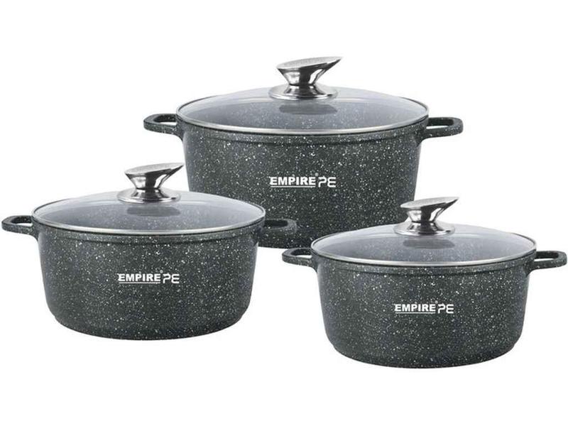Набор кастрюль 2/4/6,5 л,20,24,28см с антипригарным гранитным покрытием грей 7345 тм empir...